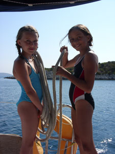Wie gesagt: Kinder spielen auf unseren Segeltörns eine wichtige Rolle. Ihre Wünsche und Interessen stehen gleichberechtigt neben denen der erwachsenen Segelgäste. Und so richtet sich auch die Törnplanung nach den Bedürfnissen aller, auch der Jüngeren. In kürzeren Segeletappen werden Insel- und Küstenstriche erkundet, zwischendurch immer mal wieder eine geheimnisvolle Bucht zum Baden und Schnorcheln angelaufen und darauf geachtet, dass die Kiddis genügend Platz haben, um sich auszutoben. Unter Berücksichtigung der Sicherheitsaspekte werden unsere jungen Gäste auch mit in den Segelalltag eingebunden und bekommen ihrem Alter entsprechend kleine Aufgaben an Bord zugeteilt. Und die Arbeit lohnt sich! Am Ende der Woche wartet der Juniorskipper-Pass auf die Jung-Segler.